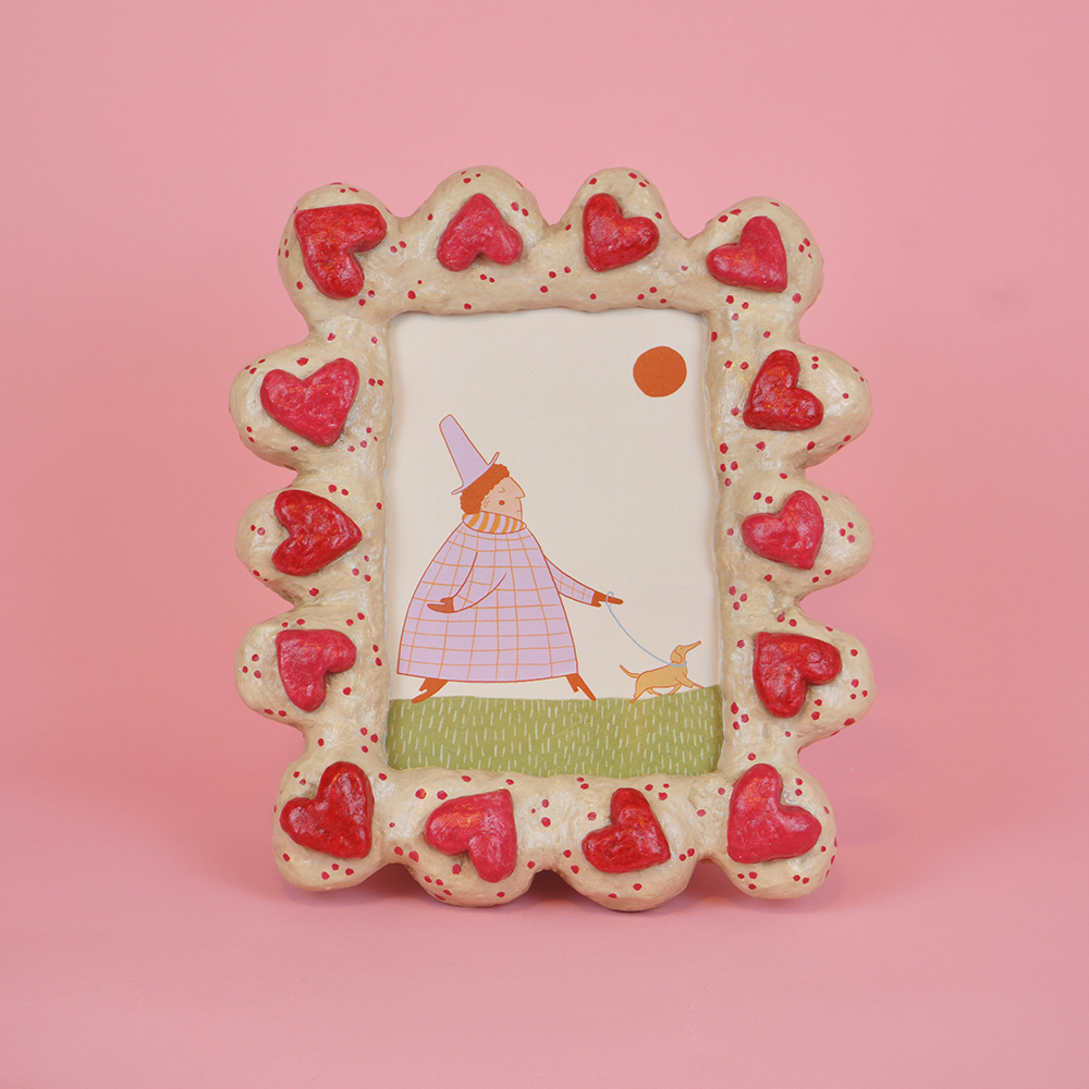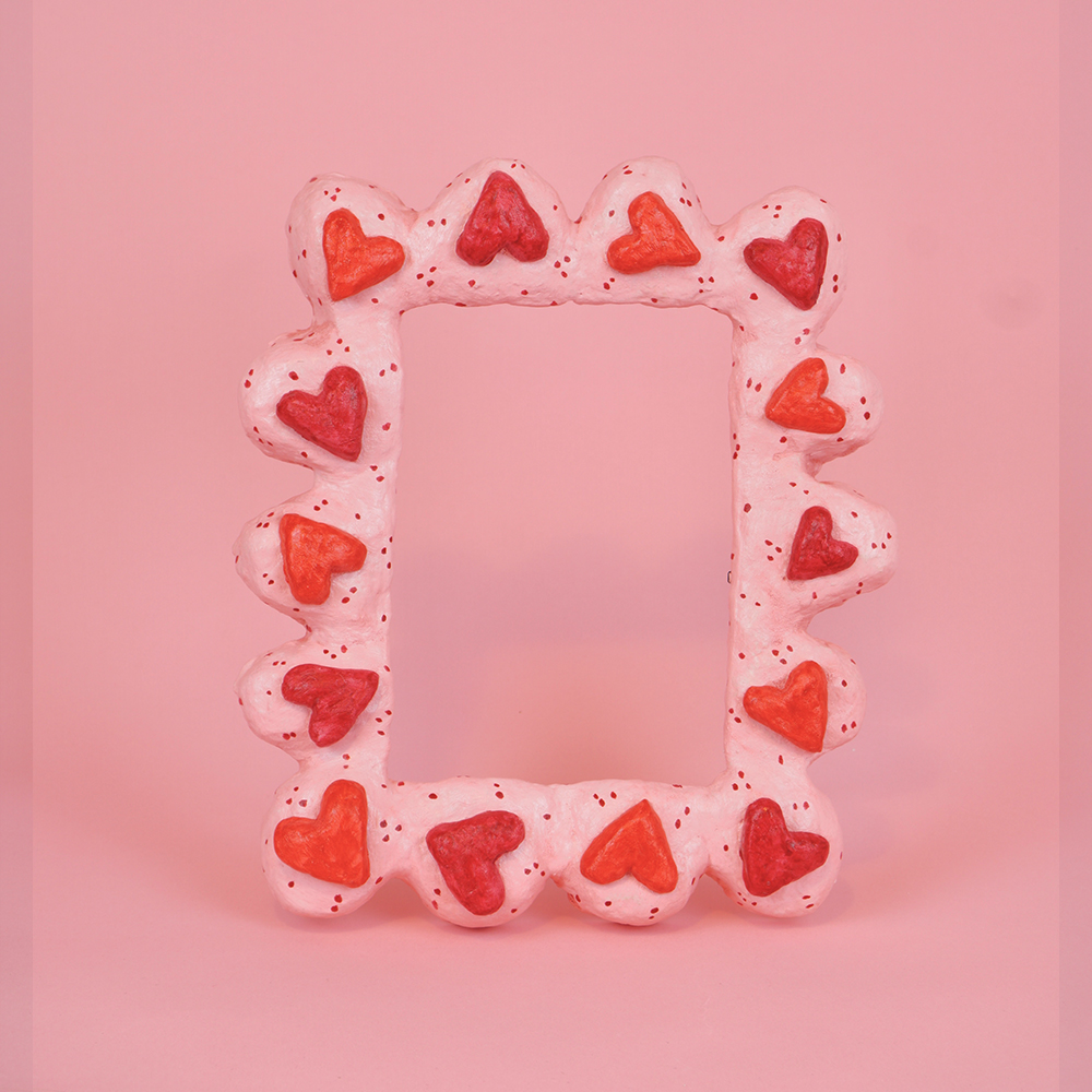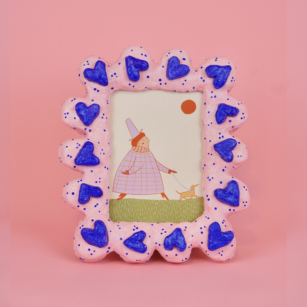 Kézzel festett, újrahasznosított alapanyagokból készült egyedi képkeret.